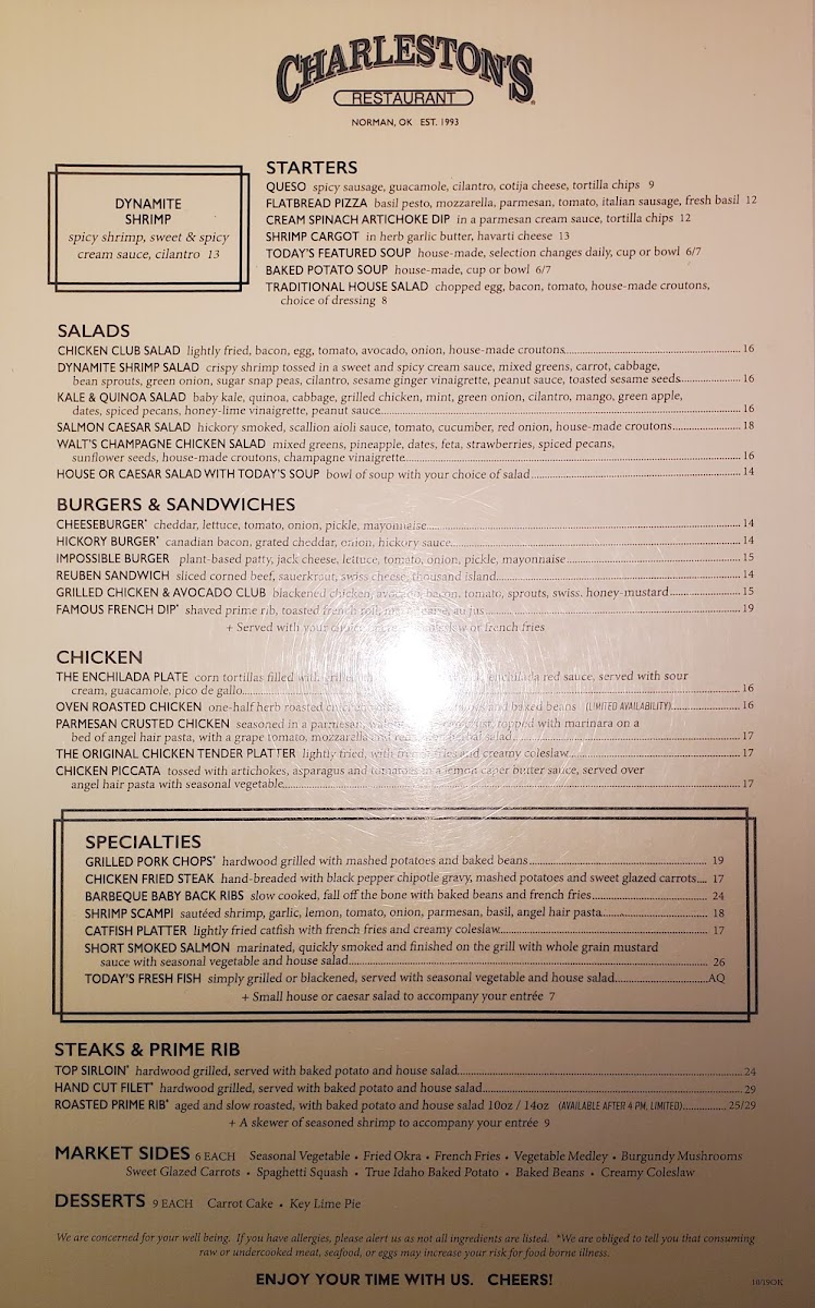 Welcome to Charleston's Restaurant - Norman, a culinary gem located at 300 Ed Noble Pkwy. Known for its inviting atmosphere and exceptional service, Charleston's promises a delightful dining experience that highlights quality ingredients and expert preparation.